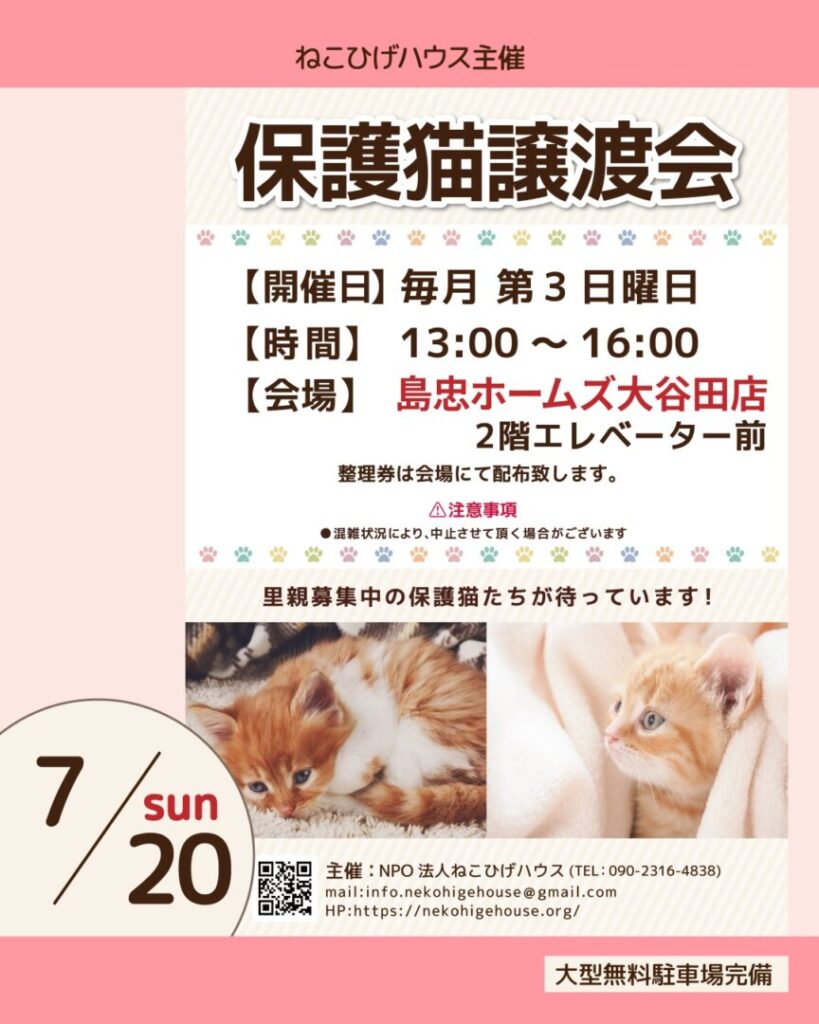 ※整理券が間に合わなかった方は譲渡会ブース内には入れませんが出来る限りのご対応も可能です。